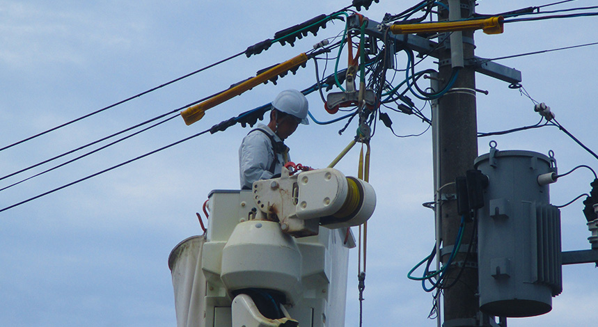 私たちは地域の暮らしに役立つ仕事をしています。暮らしを豊かにするために電気の仕事ができて本当に楽しい毎日です。