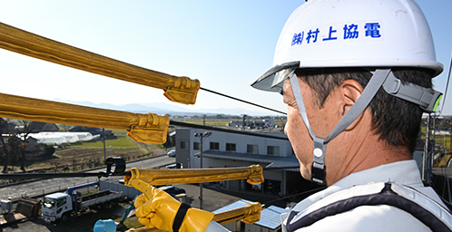 私たちは、村上市内および関川村、胎内市の一部を中心に、電力会社からの引込線工事を行っています。